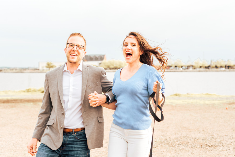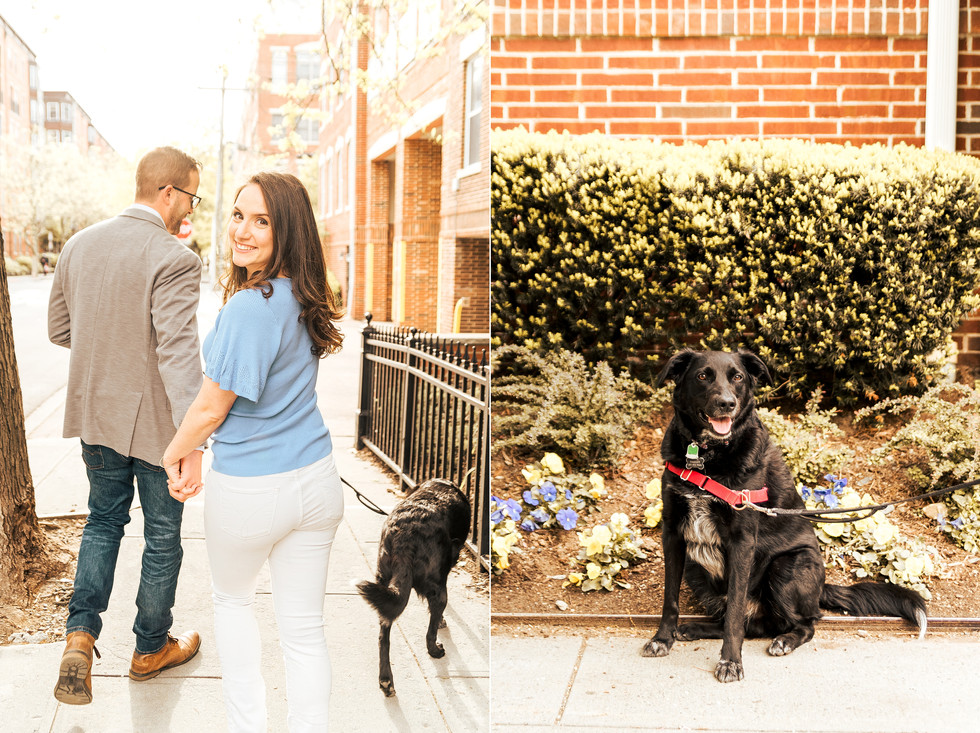 Their Session: Lindsey, Brian, and their sweet rescue pup named Parker and I met up on a breezy Spring day. They wanted to memorialize such a special place to them; Jersey City! We went to Morris Canal Park, took a walk down the road walk where they often take Parker, popped by Grove Street, and finished off their engagement session at Liberty State Park! I can't wait to show you some of my favorite images from their session, but first, more about their love story!